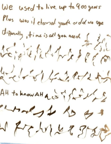 Emily Trim Automatic Writing Illustration possible referencing communication with a divine entity capable of mortal life up to 900 years, coincidentally or otherwise matching that of those early humans.